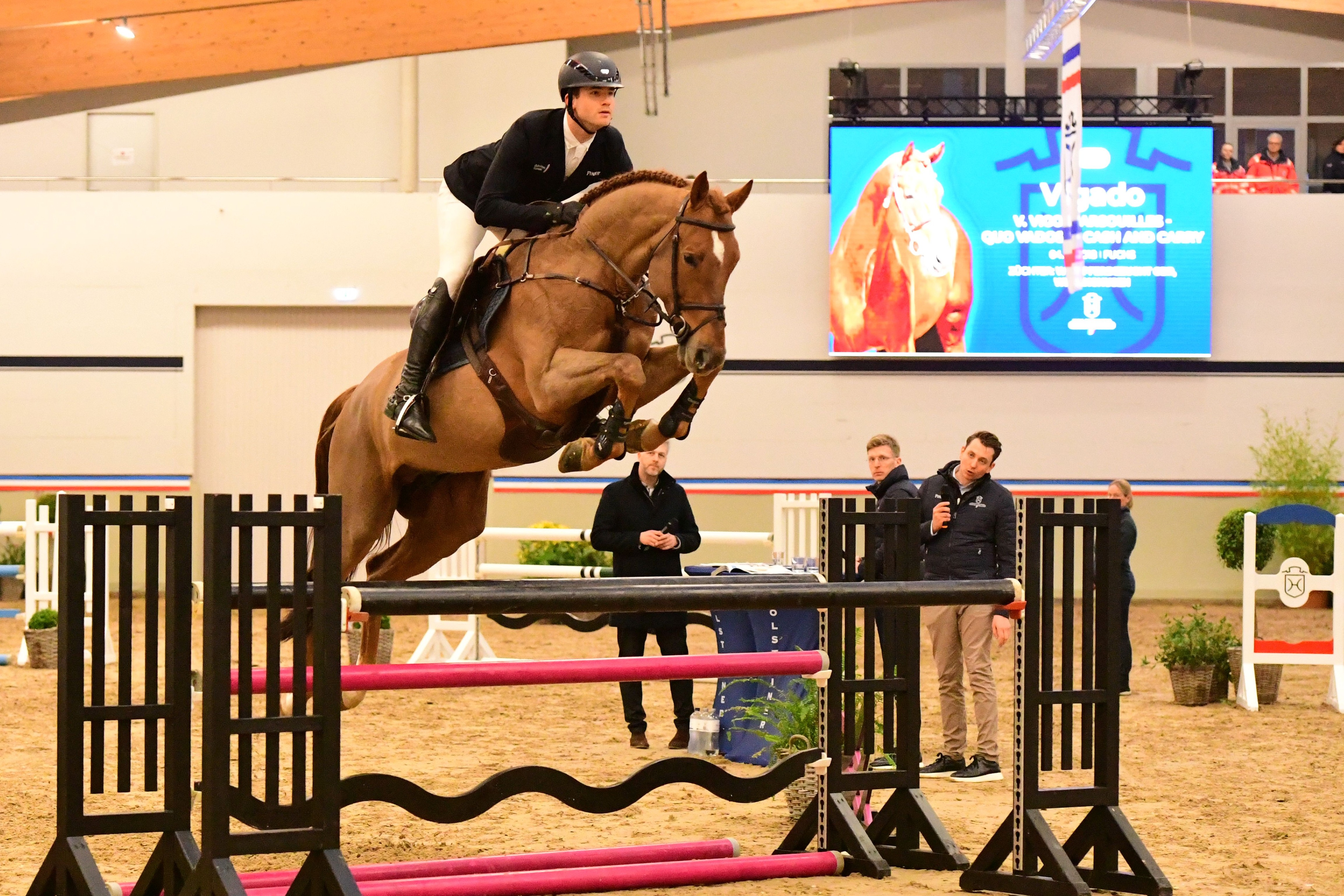 Unter dem Sattel – im altersgerechten Parcours – werden Arne van Heel, Lucas Wenz, Maria Bodega, Mathies Rüder und Tjade Carstensen den größten Teil der Vererber präsentieren. Das Publikum darf sich unter anderem auf den Siegerhengstes 2024, Conchezz v. Colestus, sowie Cognac v. Comme il faut freuen. Diese beiden Vierjährigen glänzten erst in der vergangenen Woche bei ihrer Veranlagungsprüfung. Und auch ihre ein Jahr älteren Boxennachbarn Cascolero v. Cornet Obolensky, Crinch v. Clarimo, Kantato v. Keaton I, United Pleasure v. United Way oder aber Karlo de Kalvarie v. Kassander van’t Roosakker sind mit von der Partie. Erhöht werden die Hindernisse für die jetzt sechsjährigen und älteren Hengste. Dazu gehören Deichkind v. Don und Union City v. United Way. Und auch Auftritte von Vigado v. Vigo d’Arsouilles, Million’s Way v. Million Dollar, Chezarro v. Casall sowie Keaton I v. Kannan und United Way v. Uriko, dazu Charaktervoll v. Comme il faut versprechen spannend zu werden.