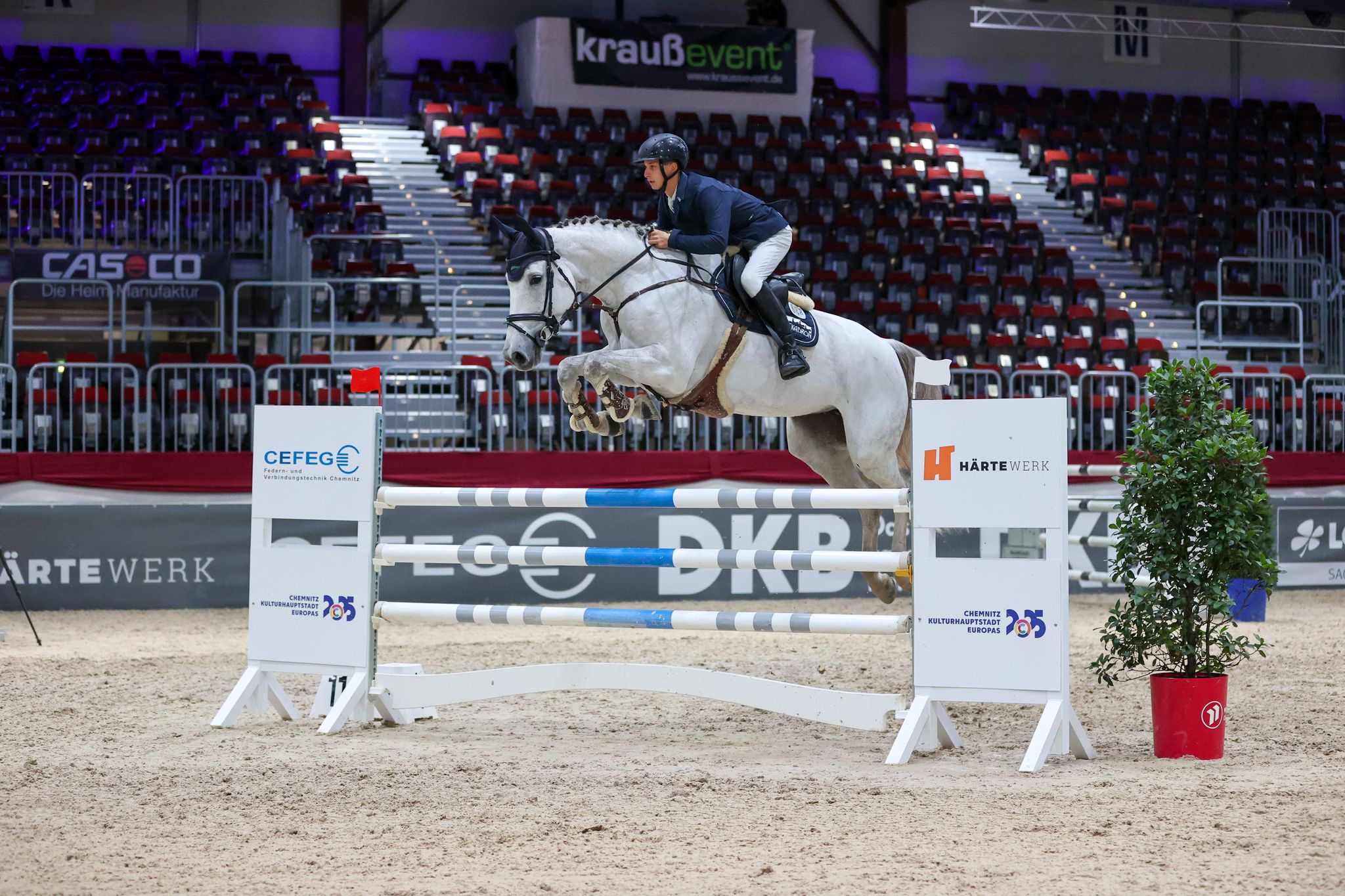 Bei der 2. Qualifikation zum Großen Preis, dem Championat der Deutschen Kreditbank AG und dem Ehrenpreis der CASCO International GmbH und Sattlerei Tom Büttner, gingen 64 Reiter-Pferd-Paare an den Start. Hier galt es im Parcours mit einer anspruchsvollen Linienführung 12 Hindernisse und 15 schwere Sprünge zu überwinden. 12 Reiter-Pferd-Paare erreichten das packende Stechen um den Sieg und dies blieb spannend bis zur letzten Sekunde. Als zweiter Starter setzte Frederic Tillmann gleich eine Bestzeit in einer fehlerfreien Runde, die erst Marvin Jüngel als achter Starter toppen konnte. Der Derby-Sieger hielt eine hohe Frequenz, hatte noch mehr Tempo und übernahm mit blitzschnellen 39,47 Sekunden mit seiner Stute DSP Kontendra S die Führung. Für den 22-jährigen Springreiter aus Sachsen war es ein Heimspiel in der Messehalle, er erhielt großartige Unterstützung vom Publikum. Aber es ging noch schneller. Die letzte Starterin, Elisabeth Meyer vom RV Hüttental e.V. konnte die Bestzeit um die entscheidenden zwei Sekunden knacken und legte mit ihrer Stute Oratrice vd Donkhoeve eine super Runde in 37,24 Sekunden hin, die am Ende zum Sieg führte. Zum morgigen sportlichen Höhepunkt, dem großen Finale um den Großen Preis, werden 48 Reiter-Pferd-Paare an den Start gehen.