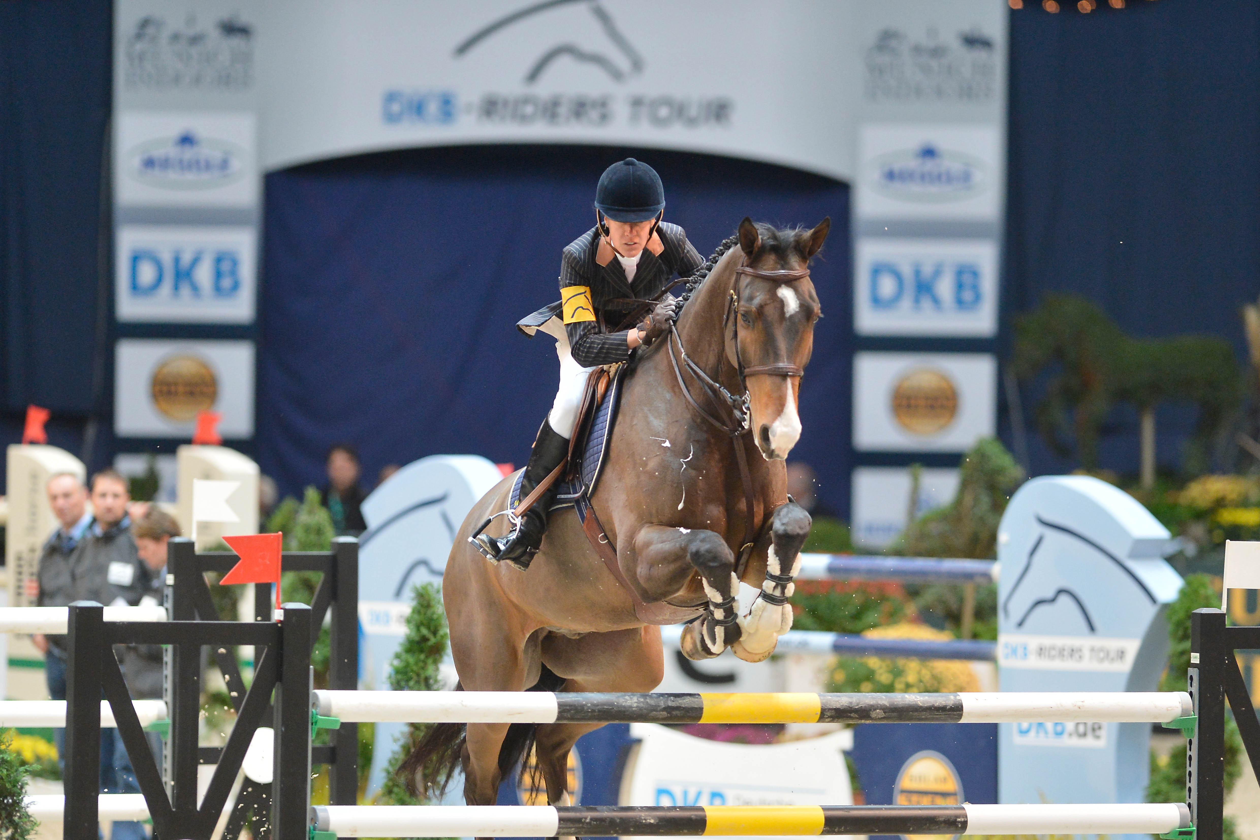 Zu diesem Zeitpunkt war für Katrin Eckermann aus Münster der Traum von einem Platz unter den ersten Drei schon ausgeträumt. Vier Strafpunkte im zweiten Umlauf kosteten wertvolle Punkte. Gemeinsam mit Ehning hatte Eckermann mit 39 Zählern Rang zwei vor der siebten und letzten Etappe in München inne gehabt. Der Glückspilz des Tages war David Will. Der gerade mal 24 Jahre alte gebürtige Bayer aus Ising, der in Pfungstadt lebt und arbeitet, behielt die Nerven und ritt seinen neun Jahre alten Colorit zum Sieg in der letzten Wertungsprüfung. Damit eroberte Will noch Platz 3 im Ranking der DKB-Riders Tour. Das sollte doch Appetit auf mehr machen? „Also Colorit ist noch jung und wenn wir beide gesund bleiben, dann wüsste ich nicht, warum die DKB-Riders Tour nächstes Jahr nicht unser Ziel sein sollte“, sinnierte der junge Springreiter.