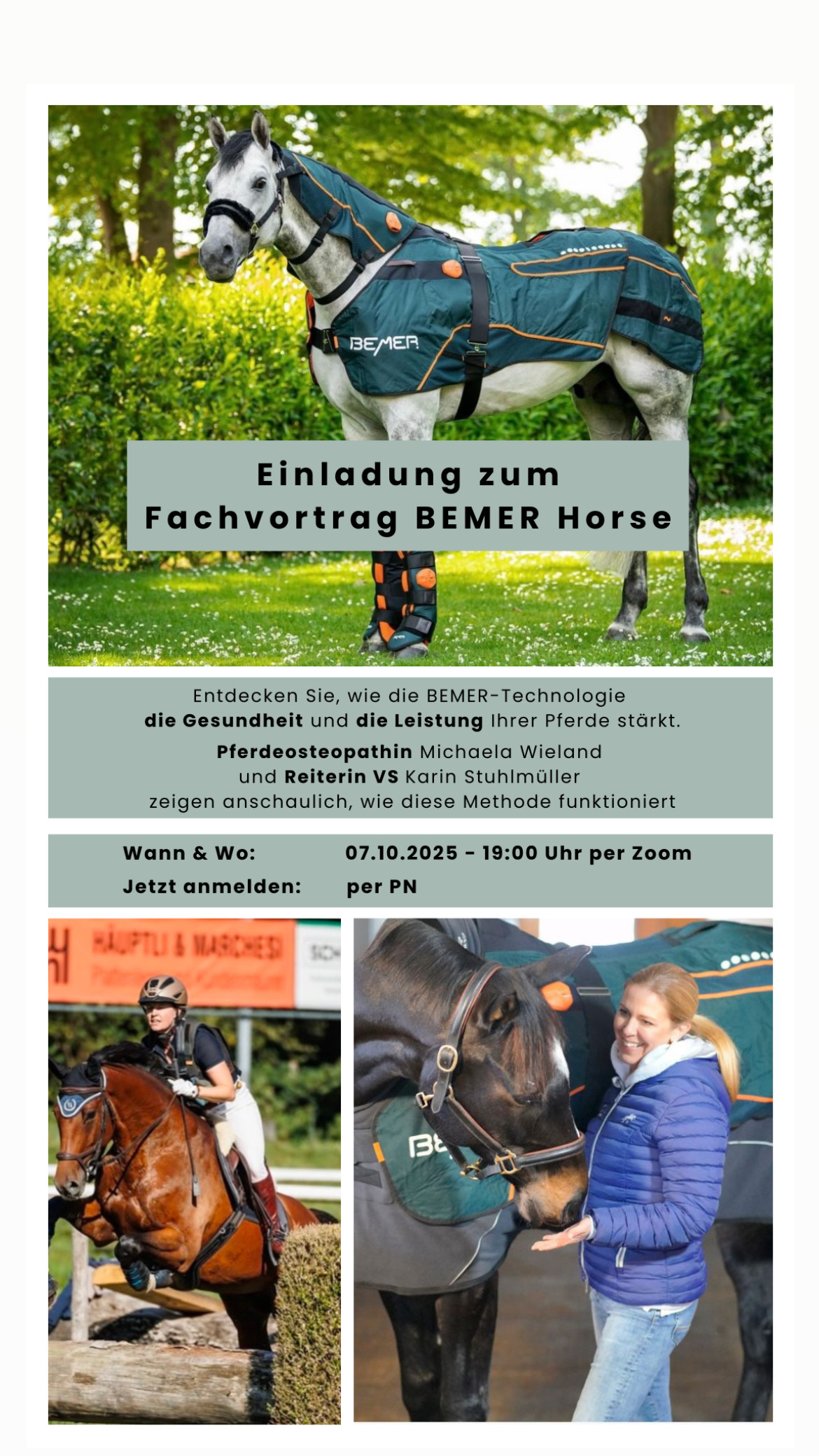 Ich selbst arbeite regelmäßig mit dem BEMER Horse-Set und habe bei vielen Pferden erlebt, wie deutlich sich die Lebensqualität verbessern kann – sei es im Reha-Prozess, zur Prävention oder zur Unterstützung bei Stoffwechselbelastungen.