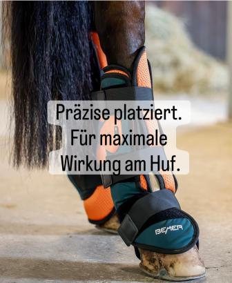 In der Kappe der BEMER-Gamaschen sitzt eine intensiv wirkende Spule, die speziell auf den Hufbereich ausgerichtet ist. Diese gezielte Anordnung hat sich besonders bei folgenden Krankheitsbildern bewährt: