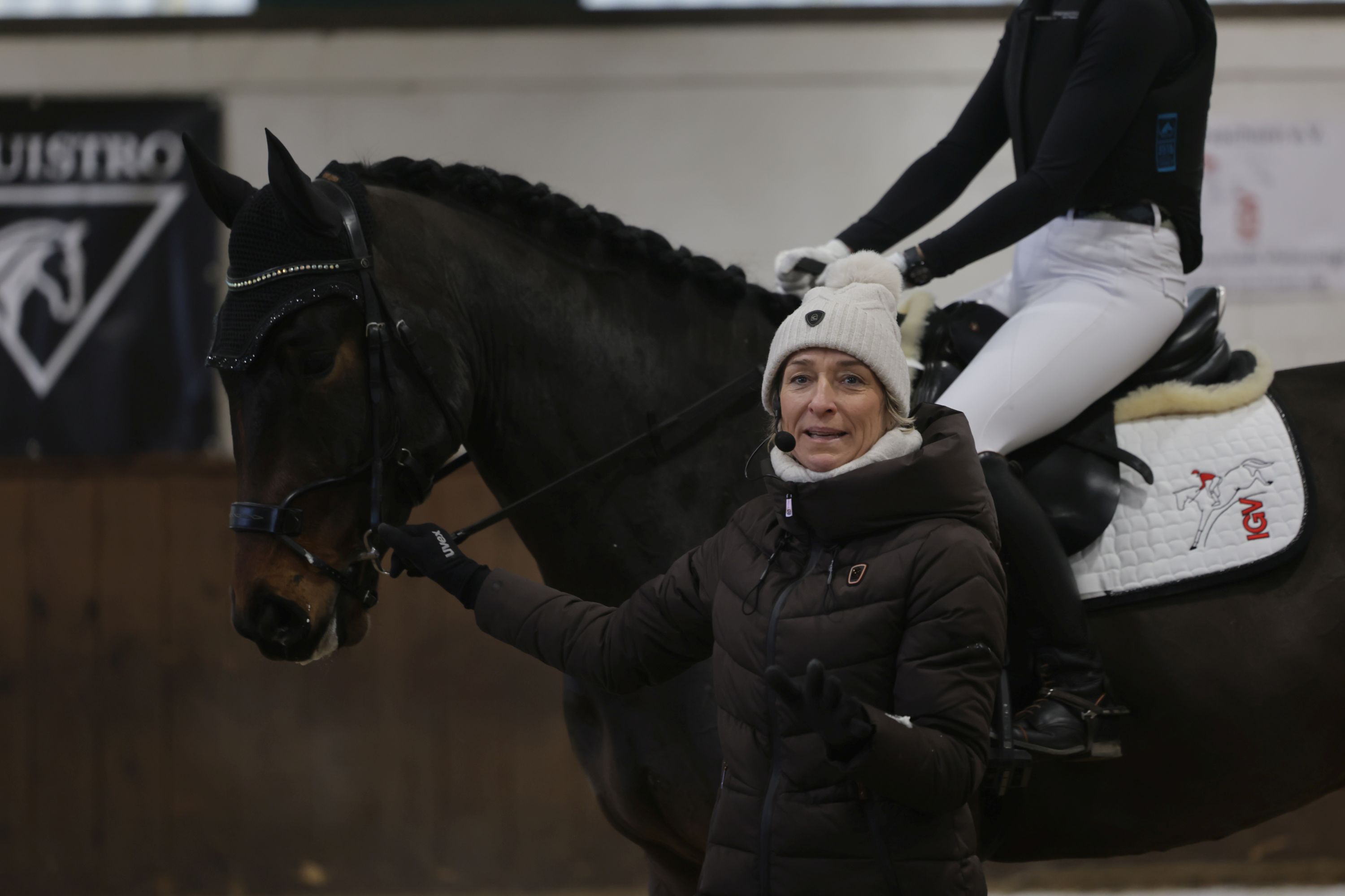 Insgesamt sechs Reitergruppen, jeweils bestehend aus zwei Reiter-Pferd-Paaren, erhielten jeweils 45 Minuten intensiven Unterricht durch Ingrid Klimke. Drei Gruppen widmeten sich der Dressurarbeit – auch über Stangen und Cavalettis, drei weitere dem Vielseitigkeitstraining mit den mobilen IGV-Geländehindernissen von Nedlandic. In jeder Disziplin begann die Masterclass mit jungen Pferden, gefolgt von Paaren auf mittlerem Niveau (L–M bzw. VL–CCI1*) und abschließend erfahrenen Teilnehmern aus den höheren Klassen (M–S bzw. CCI2**–3**). Alle Reiter-Pferd-Paare erhielten wertvolle Impulse und zeigten sich am Ende sichtlich zufrieden mit den Trainingsfortschritten.