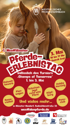 Am 3. Mai wird es in Münster-Handorf lebendig: Beim 1. Westfälischen Pferde-Erlebnistag dreht sich alles um die Faszination Pferd – und das für die ganze Familie.