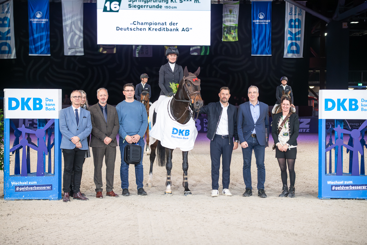 Sie gaben alles, behielten starke Nerven, gingen ins volle Risiko und setzen sich mit einer schnellen, fehlerfreien Runde an die Spitze: Die Sauerländerin Kathrin Müller vom ZRFV Voßwinkel e.V. gewann unter dem Sattel des 10-jährigen Hannoveraners Toulago 3 das „Championat der Deutschen Kreditbank AG“ und dem Ehrenpreis der CASCO International GmbH. Die 40-jährige Reiterin und ehemalige Deutsche Vize-Meisterin der Damen hatte allen Grund zum Jubeln. Felix Ewald vom RZFV Im Ländchen Rhinow e.V. blieb ihr mit fünf Hundertstelsekunden Unterschied auf den Versen und platzierte sich mit Crypton Comme il Faut auf einen fantastischen zweiten Rang vor dem dreifachen Derby-Sieger Toni Haßmann mit Sacramento Gold.