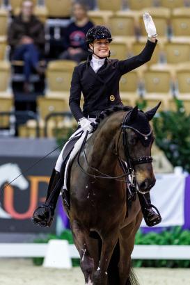 Entsprechend groß war die Freude über das Ergebnis: „Ich freue mich wirklich sehr über den Ritt heute, die Prozente und natürlich den Sieg. Ich habe in der Vorbereitung ein paar Kleinigkeiten verändert, vor allem um die Balance in der Piaffe-Passage-Tour zu verbessern, speziell in der Piaffe. Heute hat er das gemacht wie ein Profi – mit so viel Sicherheit, Vertrauen und Leichtigkeit. Es war fast so, als würde er sagen: ,Lass mich mal machen, dann geht das schon.‘ Ich bin ganz, ganz stolz auf ihn. Gerade wenn man bedenkt, dass es erst sein dritter Grand Prix war.“