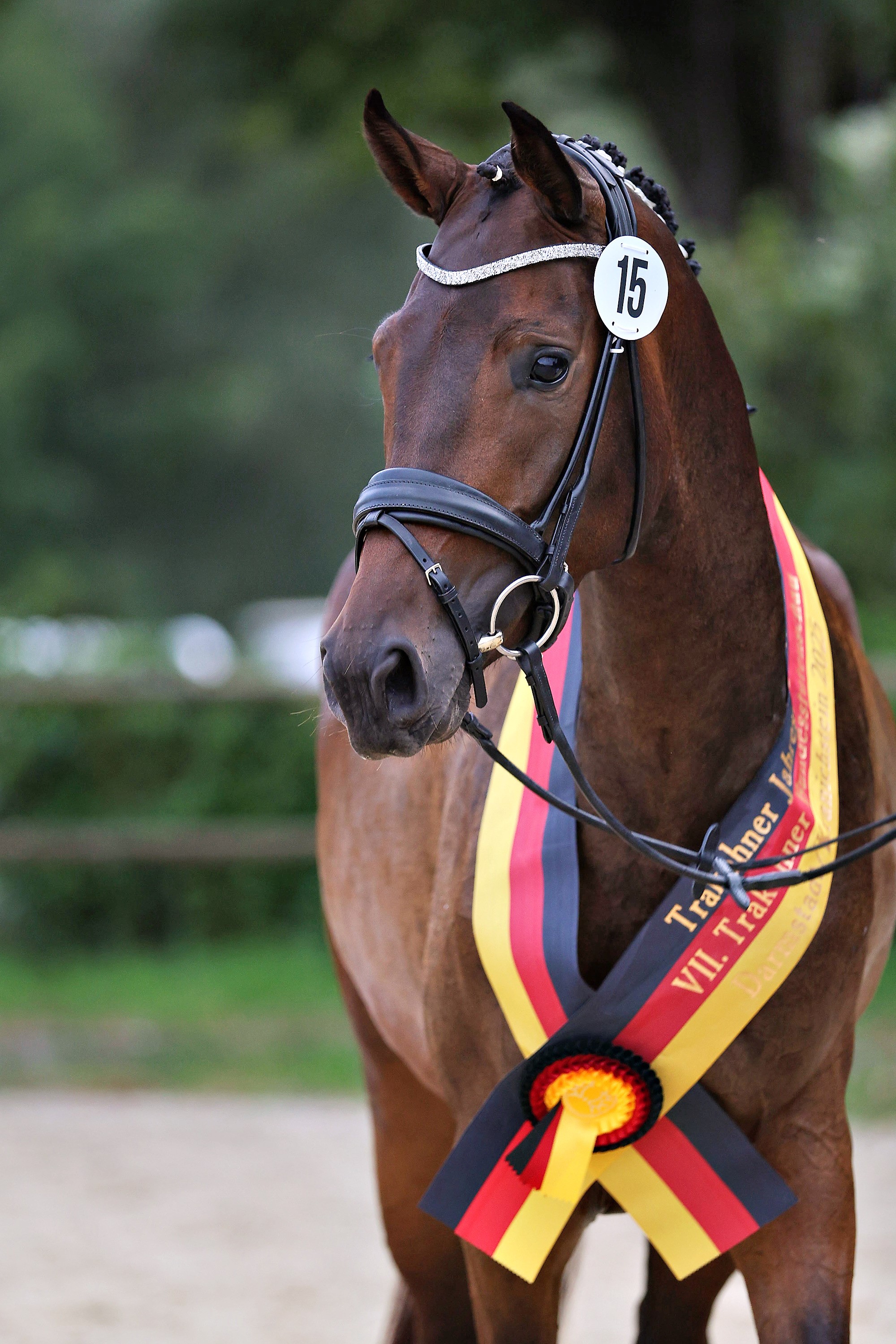 Die jungen Stuten hatten sich als Jahrgangspitzen bei den Zentralen Eintragungen der zehn Trakehner Zuchtbezirke für einen Auftritt bei der Bundestutenschau qualifiziert. Aus den 15 vorgestellten Konkurrentinnen ermittelten die Richter die Siegerstute sowie zwei Reservesiegerinnen. Die Qualität der Kollektion begeisterte das Richtertrio und die weit über 800 Zuschauer, die Stuten mit Szenenapplaus begleiteten und die Siegerin mit Ovationen feierten.