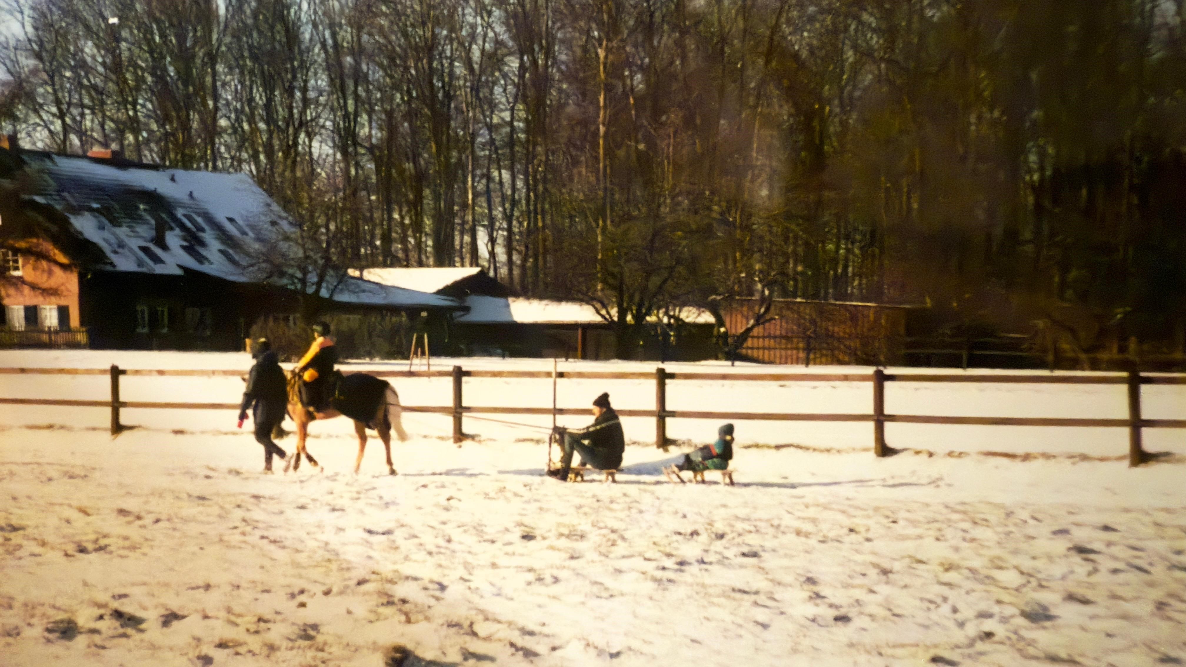 Foto: Schnee ist selten – aber wenn er fällt, wird bei Familie Luther der Schlitten herausgeholt. Früher zogen ihn die Ponys, heute der Trecker - Fotograf: Veranstalter