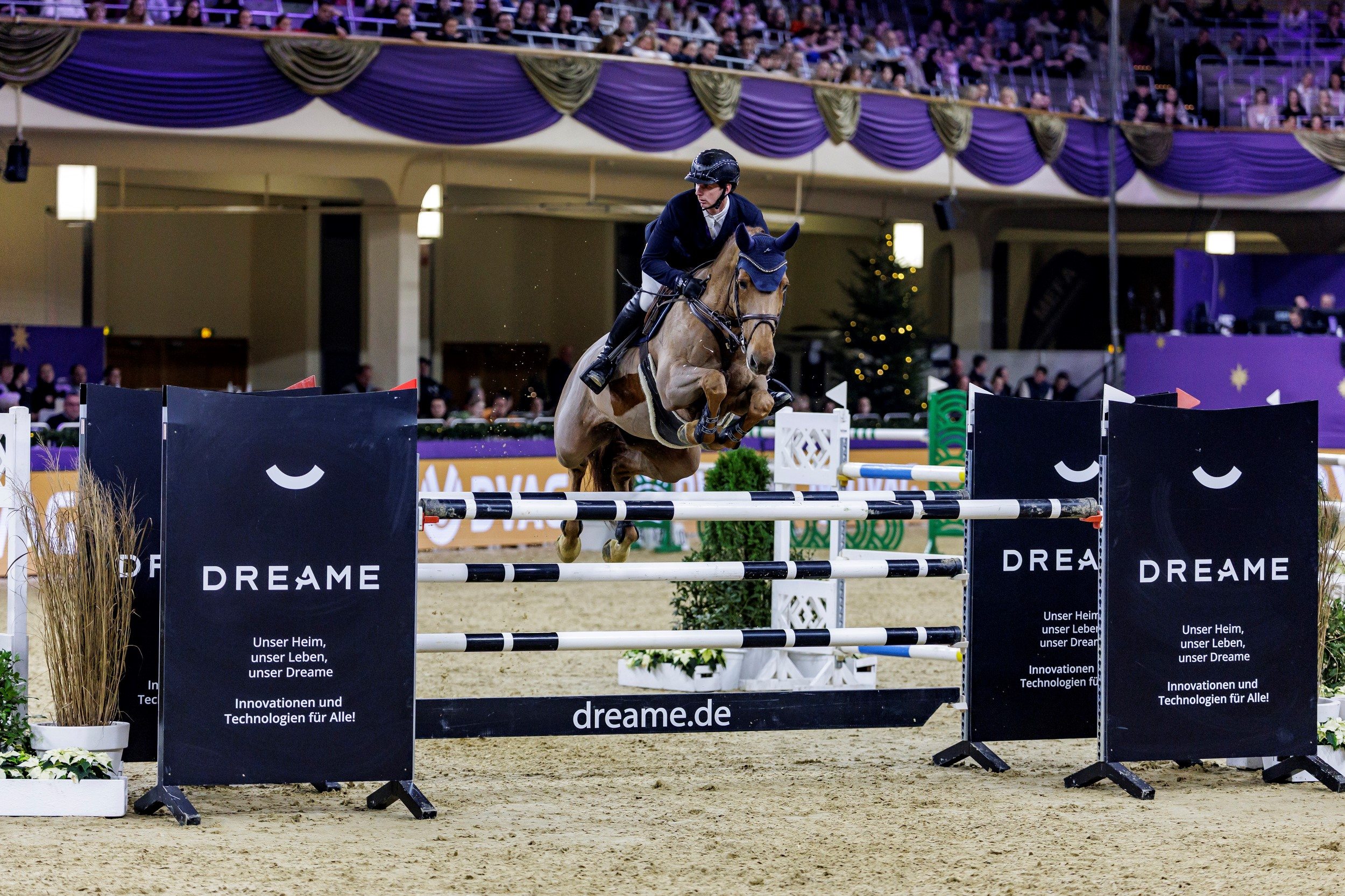 „Der fliegende Felix“ – so ist er bekannt, in Frankfurt unterstrich Felix Haßmann noch einmal die Bedeutung seines Spitznamens. Im Preis der DREAME.de, einer internationalen 1,45-Meter Springprüfung mit Siegerrunde, flog der 39-Jährige mit seiner elfjährigen Carrie Brad Shaw MWZ durch den Parcours: fehlerfrei in 32,03 Sekunden. Deutschlands aktuell erfolgreichste Amazone, Sophie Hinners, war dem Sieger am dichtesten auf den Fersen: Platz zwei mit Erevan de Flusel in 32,20 Sekunden. Um ein Mini-Haar hätte sich der Sieger des Champions Cups noch vor die schnelle Pfungstädterin gesetzt. Der Brasilianer João Victor Castro Aguiar Gomes De Lima blieb mit dem elfjährigen Belgier Obama de la Liniere ebenfalls ohne Fehler – in 32,21 Sekunden. Eine Hundertstelsekunde zwischen Platz zwei und drei – die Festhallen-Zuschauer hielt es nicht mehr auf ihren Sitzen. Die sportliche Spannung schwappte aus dem Parcours bis in die obersten Ränge.