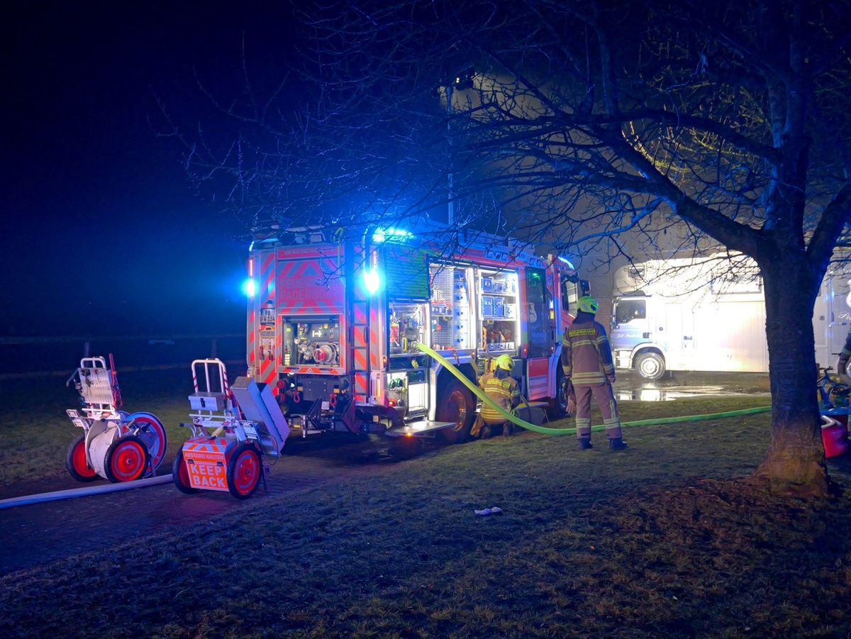 Am Samstag, den 21.02.2026, alarmierte um 21:16 Uhr die Leitstelle für den Brandschutz und Rettungsdienst des Kreises Paderborn mit dem Meldebild "Bauernhofbrand" die Feuerwehr der Stadt Paderborn in den Ortsteil Wewer. Hier war es in einem Pferdestall zu einem Brandereignis gekommen. Beim Eintreffen der ersten Einsatzkräfte hatte sich der Brand im Gang des Pferdestalls und vor dem Gebäude ausgebreitet.