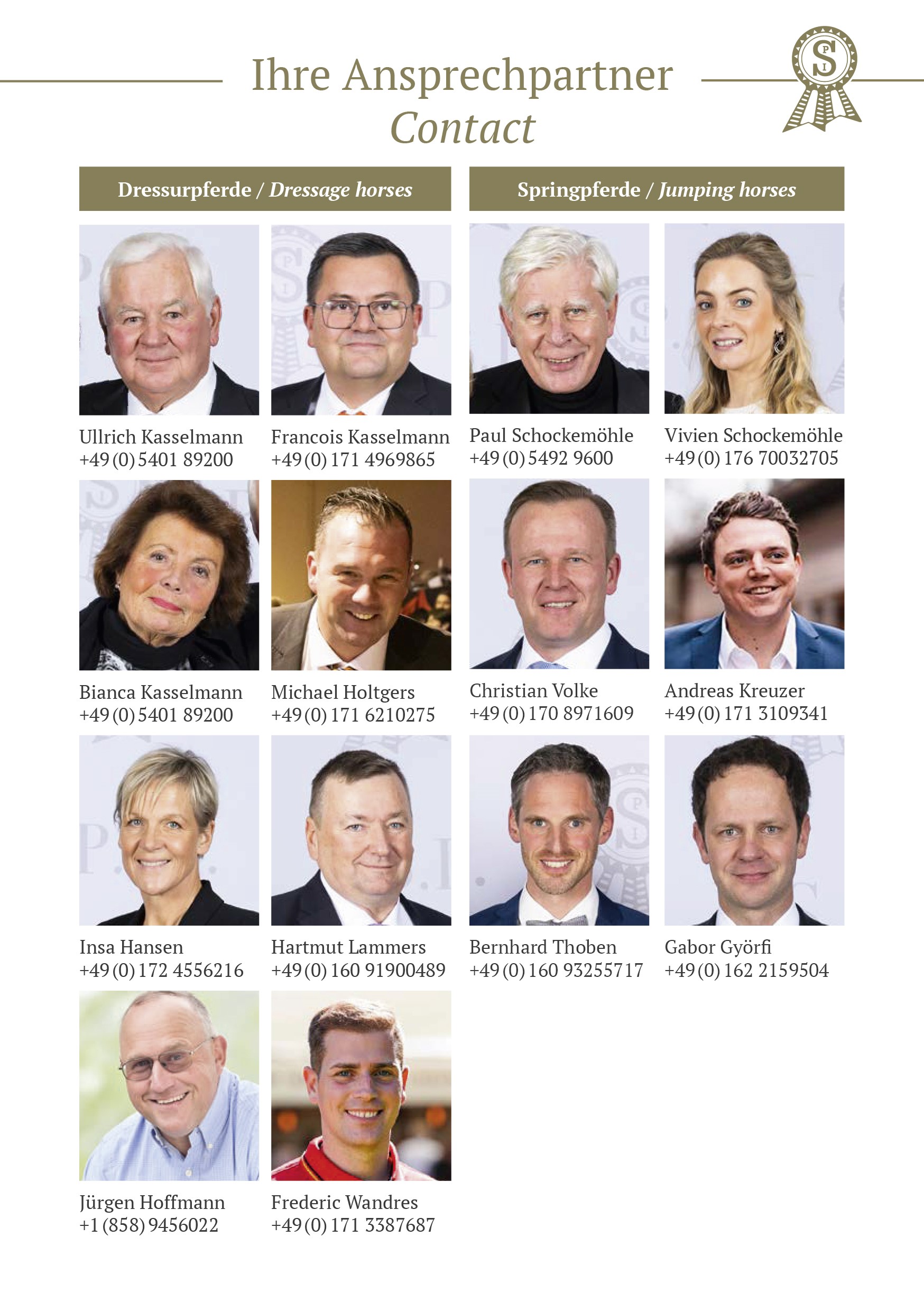 Wenn Sie an der Auktion teilnehmen möchten, Pferde ausprobieren wollen oder Hilfe bei der Ticketreservierung oder Hotelbuchung benötigen, können Sie sich jederzeit gerne an uns wenden. Unser Team hilft Ihnen gerne bei der Koordination Ihres Besuchs und sorgt für einen reibungslosen und angenehmen Ablauf.