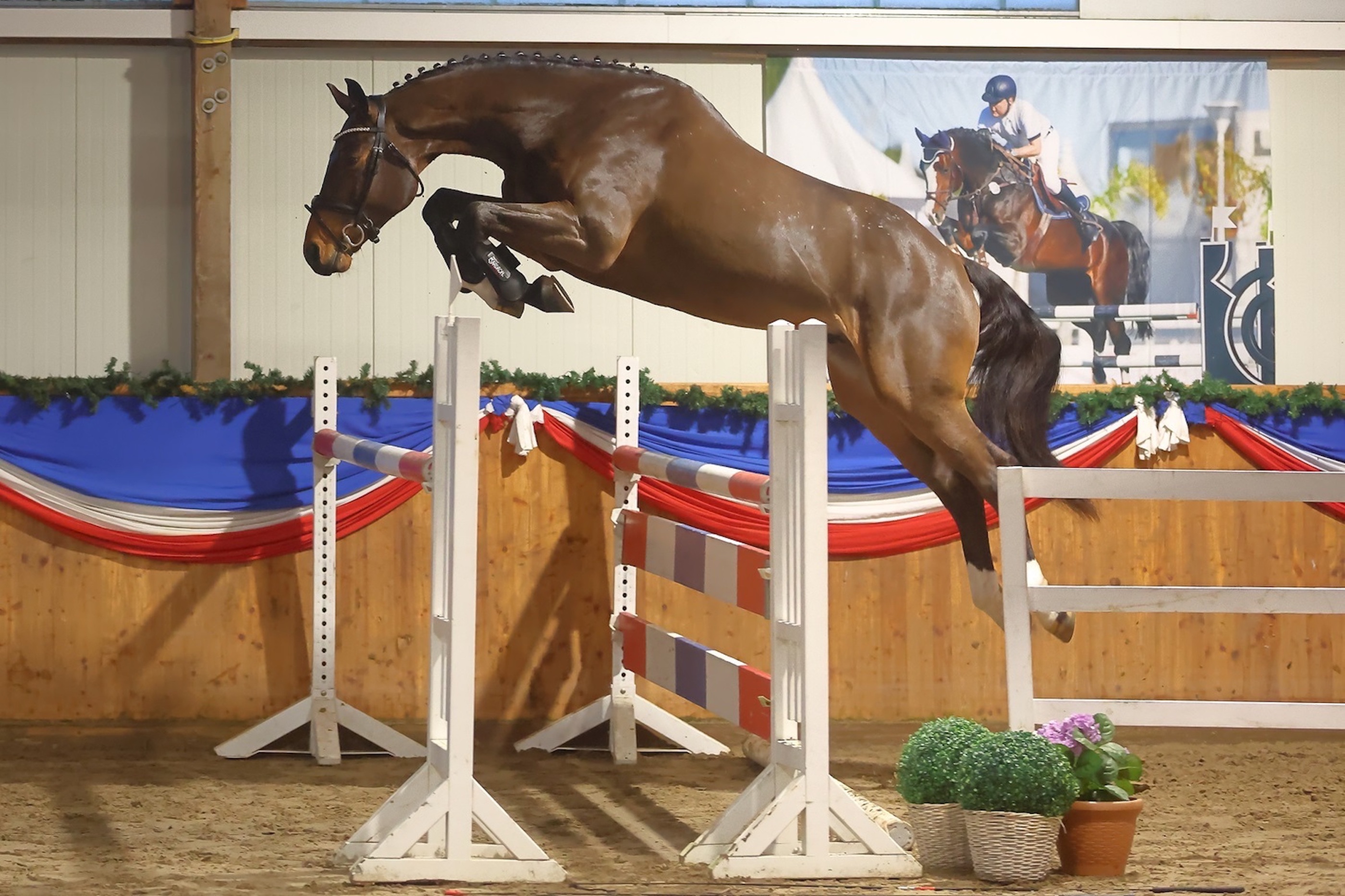 Foto: Er war der “Primus inter Pares” in der Gruppe der Dreijährigen im Dezember 2024: der Wallach Keatano von Keaton-Canto. Jetzt folgt Auflage 2 des Freispring-Wettbewerbs auf der Station Maas J. Hell - Fotograf: St. Bischoff
