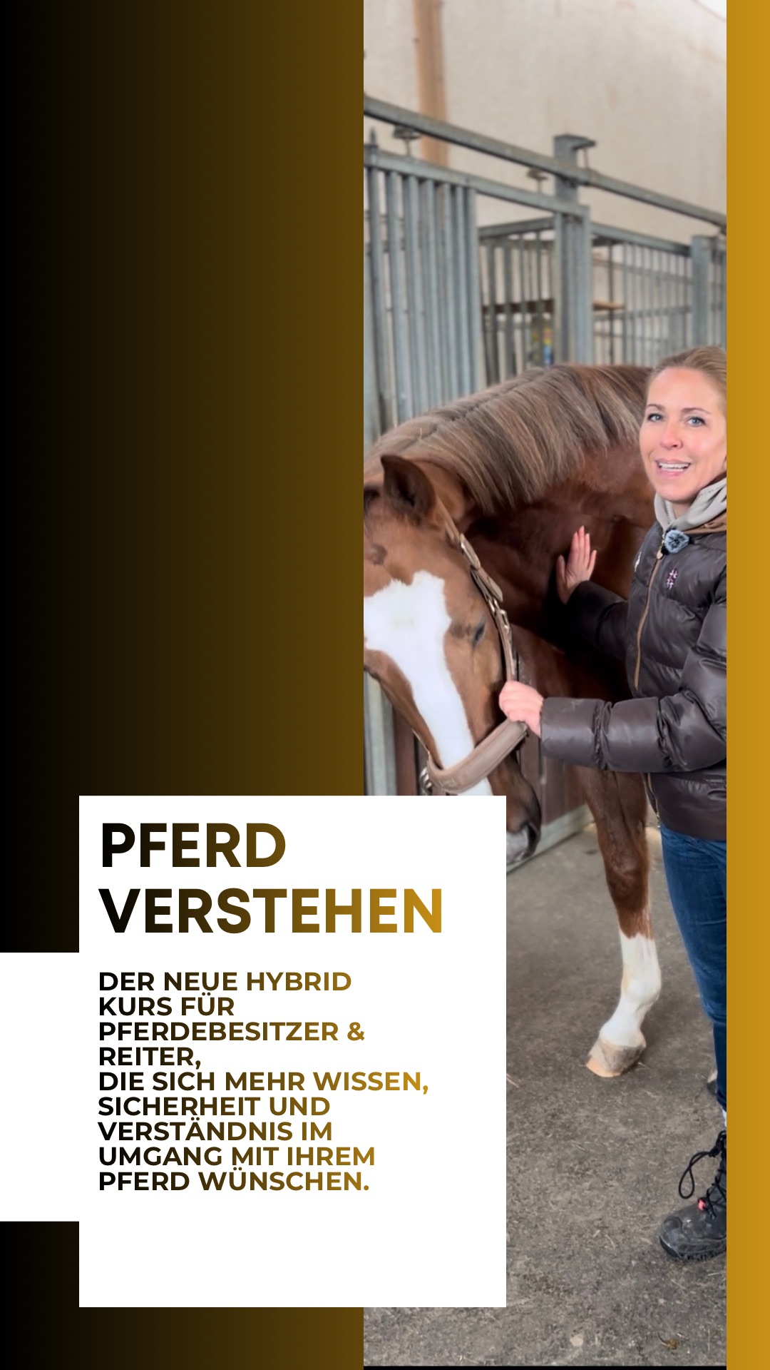 Im kostenfreien Live-Webinar am 2. März von 19.00–20.00 Uhr lernst Du mich und die Inhalte, Aufbau und Ablauf meines neuen Hybrid-Kurses PFERD VERSTEHEN kennen. PFERD VERSTEHEN ist mein Premium Kurs für Pferdebesitzer und Reiter, die ihr Pferd eigenverantwortlich, fundiert und achtsam unterstützen möchten.