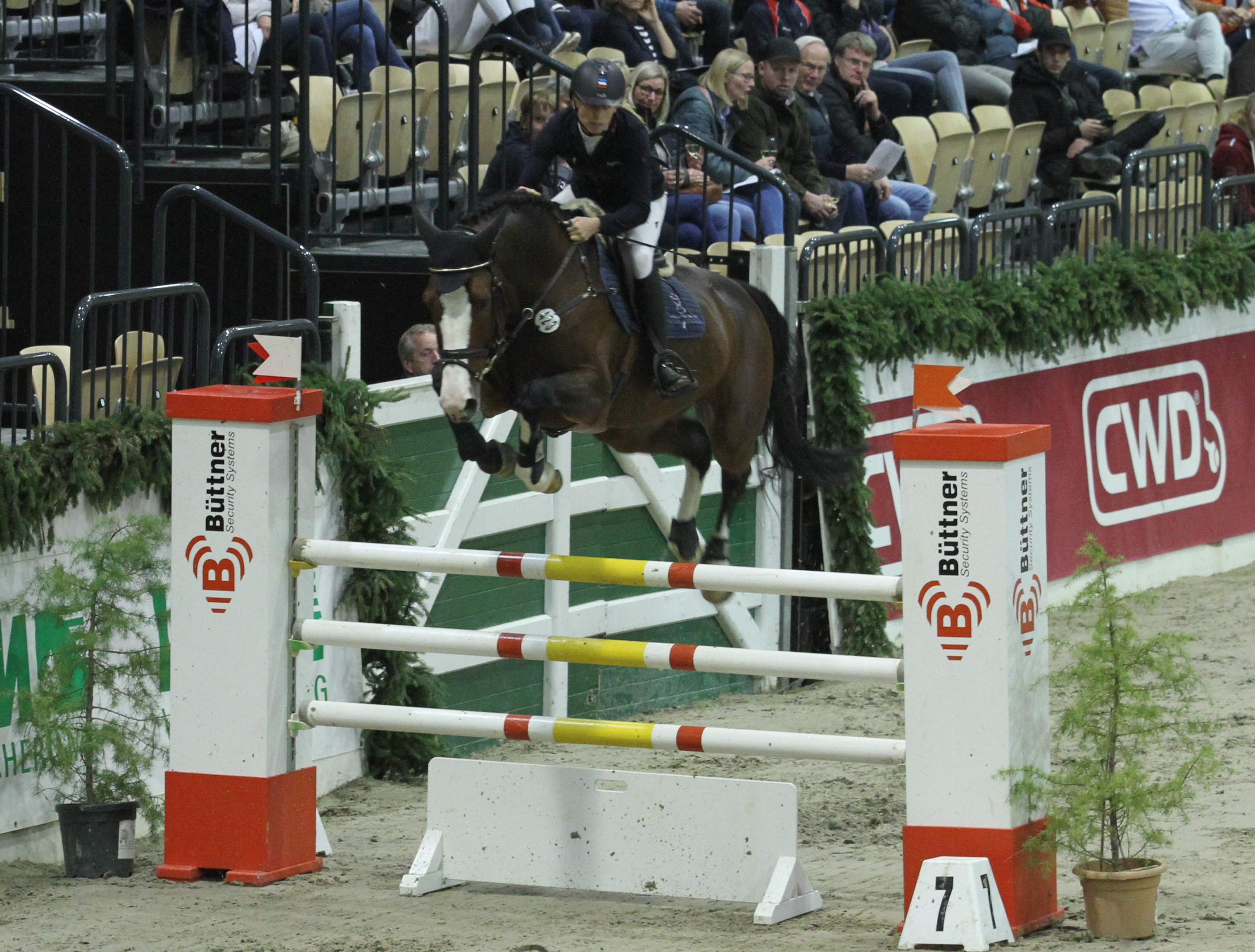 Der Sieg hier ging nach spannenden Stechen an Thomas Brandt (Winsen /Aller) und Quintana, eine Holsteiner Tochter des Quality x Adeptus aus eigener Zucht und Aufzucht vor der Schwedin Ulrika Sanny auf Vanilla Z (Van Gogh x Guidam), die das Stechen der 12 Reiter eröffnete und lange führte.