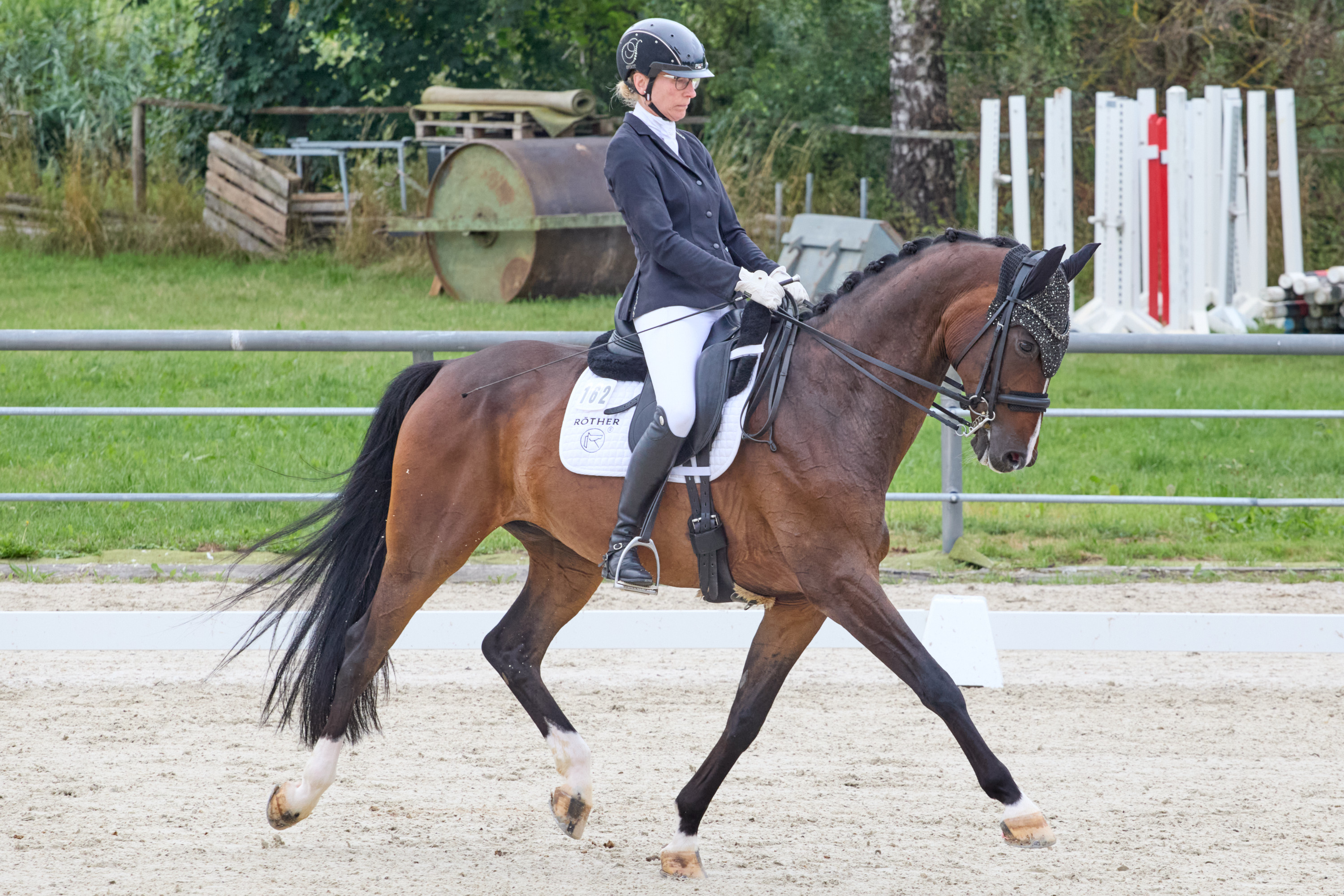Die Teilnehmer kamen aus dem ganzen Ostalbkreis, Schwäbisch Gmünd, Heuchlingen, aber auch von weiter her. Durch sehr hohe Teilnehmerzahlen aus weitem Umkreis wurde den Gästen ein vielseitiges und unterhaltsames Programm gezeigt. Nach dem großen Erfolg des Springturniers vor einer Woche hatten nun die Dressurreiter die Gelegenheit, ihr Können zu zeigen. Die Leistungen der Teilnehmer waren sehr gut, was sich in den teilweise hohen Noten widerspiegelte. Als einer der Höhepunkte des Turnier galten hier nicht nur die Prüfungen, sondern auch die Richter. Unter den Richtern fand sich die international erfahrene Richterin Kerstin Holthaus, die erneut die Richter am Turnier komplettierte. Auch die Reiter des gastgebenden Vereins konnten trotz der großen Konkurrenz punkten. Dr. Irene Walter kam mit ihrem Asterix in der Dressurreiterprüfung Klasse A auf Platz zwei. Josephin Fuchs kam im Reiter-Wettbewerb Schritt-Trab-Galopp ebenfalls auf Platz zwei. In der Dressurpferdeprüfung Klasse A kam Adrian Klatt mit Fine auf Platz vier. In der M*-Dressur auf Trense kam Adrian Klatt auf Mark-Siegfried auf Platz vier, Marlene Krieger auf Willi Wunder auf Platz drei und Loreen Epacher siegte auf Mefisto überragend. Sie ritt als letzte Starterin in die Bahn und setzte sich mit einer tollen Note an die Spitze. Zur Zeit der M-Dressur gab es am Samstag erschwerte Bedingungen, es regnete in Strömen. Die Reiter trotzten dem Regen und zeigten trotz des Wetters tollen Sport.