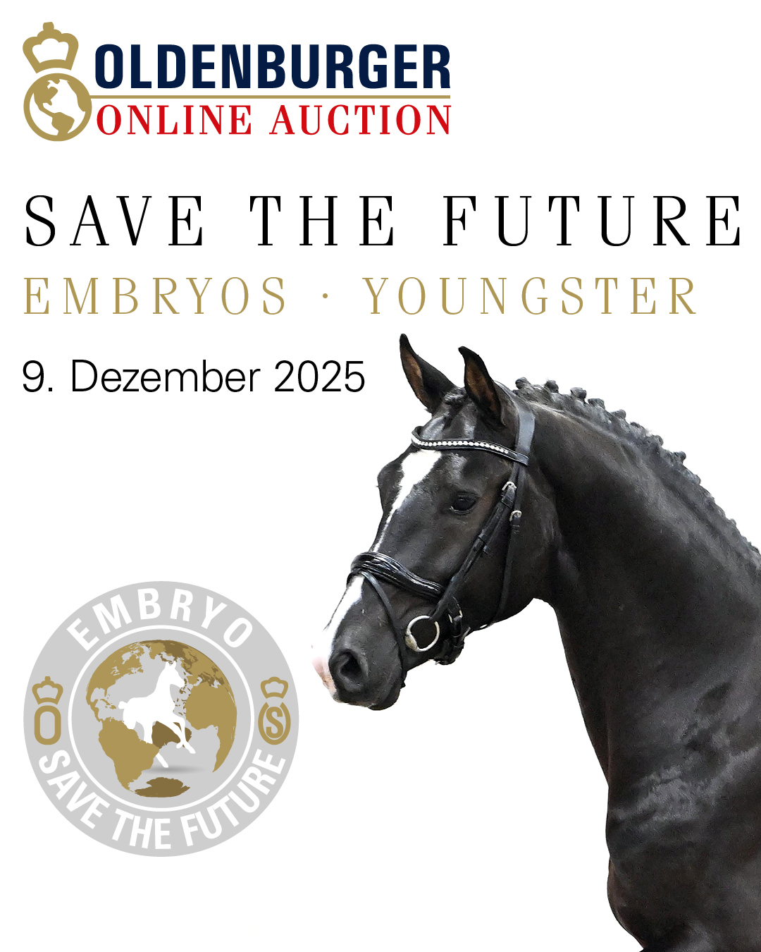 Mit der „Save the Future“ Online-Auktion 2025 präsentiert der Oldenburger Pferdezuchtverband eine außergewöhnliche Kollektion an Embryonen sowie ausgewählten Youngstern, die in ihrer genetischen Tiefe, Leistungsdichte und Zukunftsausrichtung neue Maßstäbe setzt.