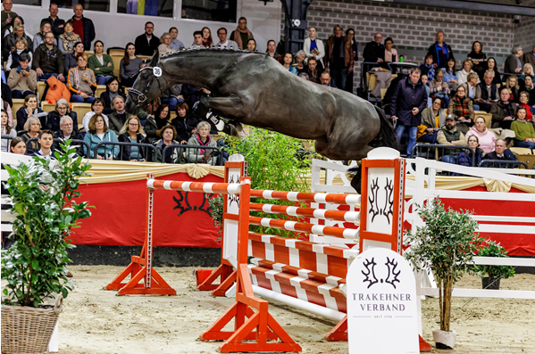 (Neumünster) Der Freitag des Trakehner Hengstmarktes begann traditionell mit dem Freispringen der Junghengste, die sich am ersten Adventswochenende um das Körprädikat der ältesten und edelsten Reitpferderasse der Welt bewerben. 35 Hengste strahlten im Glanz der festlich geschmückten Holstenhalle und absolvierten souverän und mit Übersicht die Springgasse. Ein im Vergleich zu den Vorjahren leicht veränderter Aufbau ließ alle Anwärter ihren Rhythmus und die gewünschte Losgelassenheit finden. Hoch zufrieden mit dem Hengstjahrgang zeigten sich von der Körkommission Dr. Hans-Peter Karp, Ochtrup, und Peter Kunath, Zehren. Nach der Vorstellung über den Stangen, präsentierte sich die Hengste an der Hand ihrer Ausbilder im Schritt vor der Kommission und wussten mit gutem Interieur auf ganzer Linie zu überzeugen. Das diesjährige Freispringen bot zudem einige Highlights mit atemberaubenden Höhenflügen, welche die Ständerhöhen der Hindernisse klein aussehen ließen. Eines der besonderen Talente wird heute im Zuge der Körung mit dem Titel des besten Springhengstes geehrt. Doch zuvor steht heute früh um 8.30 Uhr das Freilaufen der Hengste nach dem Holländischen Modell auf dem Programm. Dabei gilt es für die Hengste ihre Galoppade und ihr natürliches Gleichgewicht zu demonstrieren, bevor nach der Mittagspause die Körurteile verkündet werden. Der gestrige Tag in den Holstenhallen bot noch weitere Höhepunkte: Freunde des Dressursports erlebten eine exklusive Besetzung der Einlaufprüfung des TSF Dressurchampionats: Die besten sieben- bis zehnjährigen Trakehner Dressurpferde hatten sich in der Saison 2025 bundesweit in schweren Prüfungen qualifiziert und das heutige Spitzenfeld wird heute um 17.00 Uhr im Finale mit einer Kürvorstellung auf St. Georg-Niveau noch einmal antreten. Heute siegte Lydia Camp-Riebau mit dem von ihrem Vater August Camp gezogenen Wallache Silverstone v. Hopkins, den die junge Profireiterin aus Geldern von der Pike an selbst ausgebildet hat. Auf Platz zwei folgte Anders Sjöbeck Hoek mit dem in Dänemark gezogenen Prämienhengst Hallifax Lyng v. Schwarzgold und Dritte war heute die Stute Kind of Magic v. Helium mit Roxana Mohr. Die Auktion der Stuten und Reitpferde setzte den Schlusspunkt des Tagesprogramms. „Besonders großen Anklang fanden die Stuten aus unserer diesjährigen Stutenkollektion sowohl bei langjährigen Stammkunden als auch bei Neukunden. Die Auswahl an hochwertigen, aus bewährten Mutterstämmen stammenden Stuten wurden vom Markt ausgesprochen positiv aufgenommen,“ fasste Vermarktungsleiter Richard Langels zusammen. „Wir freuen uns, diese aufstrebenden jungen Spitzenstuten in guten Händen zu wissen und sind uns sicher, in der Zukunft noch viel von ihnen zu hören zu dürfen.“ Gefeierte Königin der Stutenkollektion war die Prämien- und Staatsprämienstute Luxus v. Freiherr von Stein, die zum Spitzenpreis der Auktion für 72.000 Euro nach Hamburg wechselte. Die vierjährige Stute ist unter anderem Mitglied der amtierenden Trakehner Bundessiegerfamilie. Mit 48.000 Euro den zweithöchsten Preis der Stuten erzielte die zweijährige Helium-Tochter Hemera, die in enger Verwandtschaft zu den Spitzenstuten Hermine, Salvana’s Helene und Salvana’s Helena steht. Die diesjährige Siegerstute der Zentralen Eintragung in Niedersachsen Nord-West, Florence v. Schäplitzer wechselte für 45.000 nach Nordrhein-Westfalen. Teuerstes Reitpferd war der dreijährige Prämienhengst Kiano, ein Sohn des Siegerhengstes Rheinglanz, den der Auktionator Hendrik Schulze-Rückamp für 45.000 Euro zuschlagen konnten. Das Nachwuchstalent geht nach Sachsen und dort in die fördernden Hände einer aufstrebenden Juniorin. Der Durchschnittspreis der Stuten betrug 28.916 Euro, der Durchschnittspreis der Reitpferde lag bei 25.083 Euro. PM |